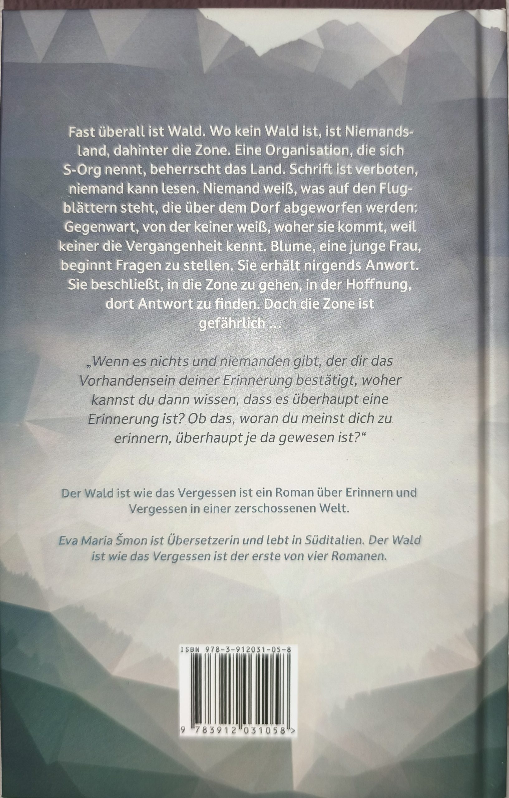 “Fast überall ist Wald. Wo kein Wald ist, ist Niemandsland, dahinter die Zone. Eine Organisation, die sich S-Org nennt, beherrscht das Land. Schrift ist verboten, niemand kann lesen. Niemand weiß, was auf den Flugblättern steht, die über dem Dorf abgeworfen werden: Gegenwart, von der keiner weiß, woher sie kommt, weil keiner die Vergangenheit kennt. Blume, eine junge Frau, beginnt Fragen zu stellen. Sie erhält nirgends Anwort. Sie beschließt, in die Zone zu gehen, in der Hoffnung, dort Antwort zu finden. Doch die Zone ist gefährlich …”
