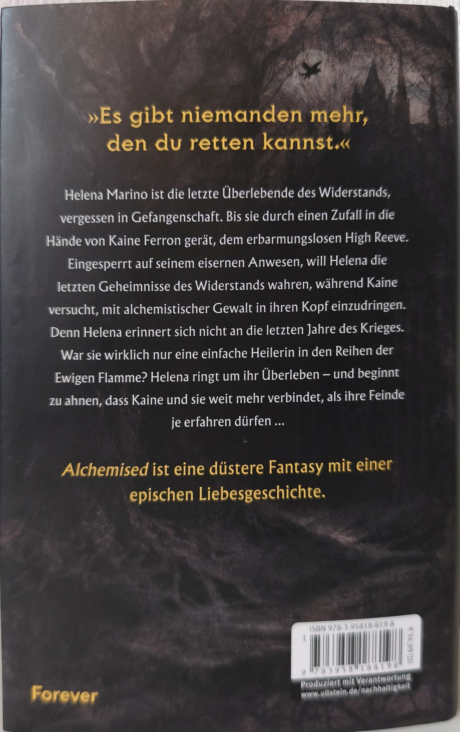 Helena Marino ist die letzte Überlebende des Widerstands, vergessen in Gefangenschaft. Bis sie durch einen Zufall in die Hände von Kaine Ferron gerät, dem erbarmungslosen High Reeve. Eingesperrt auf seinem eisernen Anwesen, will Helena die letzten Geheimnisse des Widerstands wahren, während Kaine versucht, mit alchemistischer Gewalt in ihren Kopf einzudringen. Denn Helena erinnert sich nicht an die letzten Jahre des Krieges. War sie wirklich nur eine einfache Heilerin in den Reihen der Ewigen Flamme? Helena ringt um ihr Überleben – und beginnt zu ahnen, dass Kaine und sie weit mehr verbindet, als ihre Feinde je erfahren dürfen … “